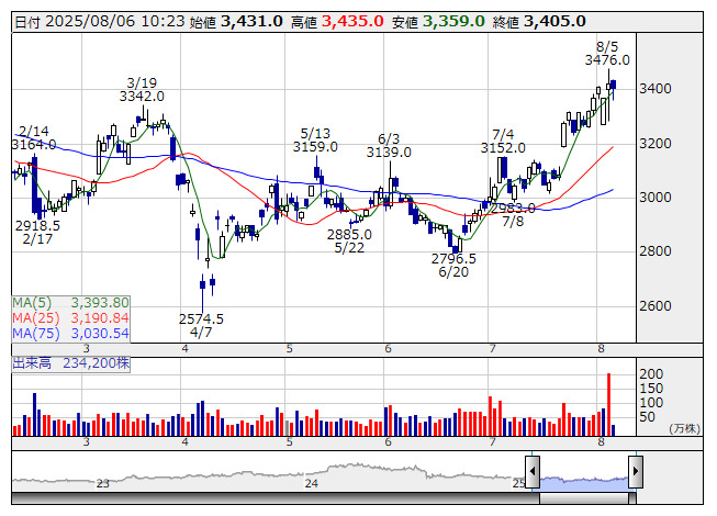 住友重 <日足> 「株探」多機能チャートより■財務省 : 8月6日受付