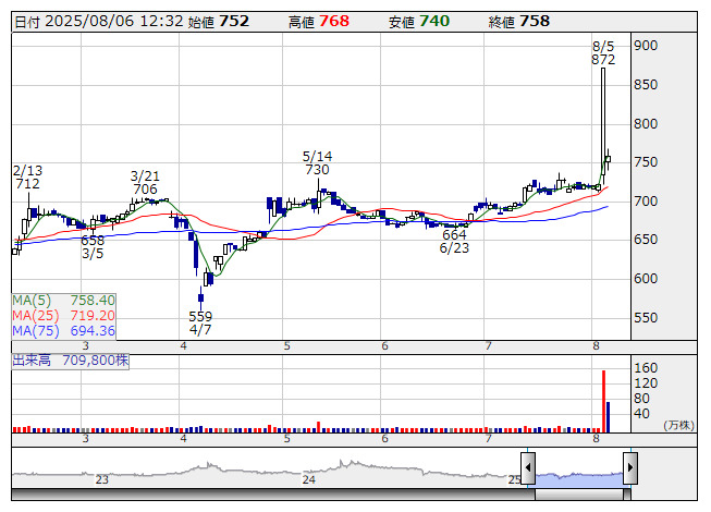5940>が急落している。5日の取引終了後、26年3月期第1四半期(4~6月)の連結決算を発表した。同社はこれまで取引時間中の午後2時に決算発表を行ってきたが、決算発表予定日の5日は午後2時の決算発表がなく、取引終了後にTOB(株式公開買い付け)の発表があるとの思惑が株式市場で台頭。前日に同社株は商いを伴ってストップ高に買われた。しかし引け後にTOBに関する発表がなく、市場での思惑は後退。一転して失望売りが膨らむ格好となった。4~6月期の売上高は前年同期比3.6%増の227億1200万円、最終損益は4億7700万円の赤字(前年同期は6億2900万円の赤字)となった。