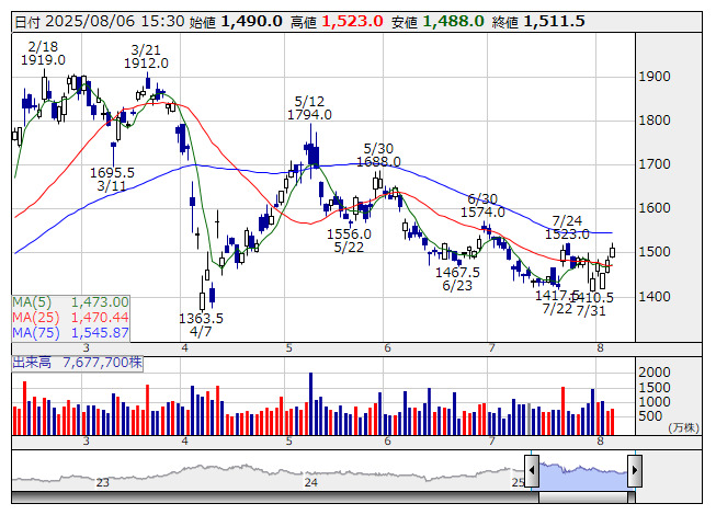 <6752> パナHD 1511.5 +28 ( +1.9%) 1473.0 1470.4
