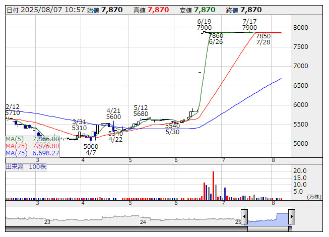 中野冷 <日足> 「株探」多機能チャートより■財務省 : 8月7日受付