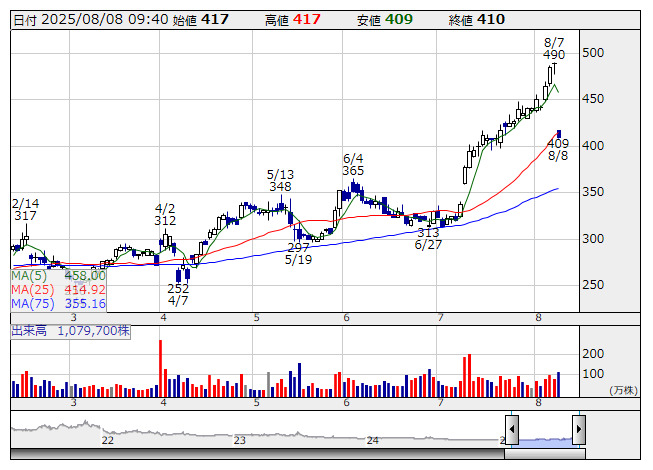 2025年08月08日09時53分 【材料】テスHDは急落、25年6月期純利益83%減へ下方修正 テスHD <日足> 「株探」多機能チャートより テスホールディングス<5074>は急落。7日取引終了後、25年6月期連結業績予想について売上高を380億円から366億円(前の期比19.4%増)へ、純利益を7億円から2億円(同83.1%減)へ下方修正すると発表。配当予想も7円66銭から5円12銭(前の期16円)へ減額しており、嫌気した売りが出ている。 電力の小売りやメンテナンス業務、バイオマス燃料の供給などが低調なため。持ち分法による投資損失に加え、期末における為替差損の評価影響(デリバティブ評価損益の影響除く)なども考慮した。 出所:MINKABU PRESS