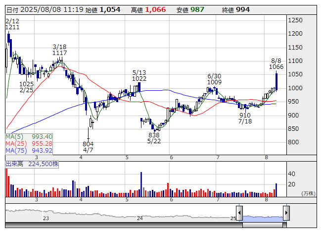 デジハHD <日足> 「株探」多機能チャートより売却した子会社の連結除外の影響により減収となった一方、ゲームやアミューズメント機器などのデバッグサービスを提供するDHグループ事業は収益性が高い国内デバッグサービスで2ケタ増収を達成。新型ゲーム機「ニンテンドースイッチ2」の発売が追い風になった。システムテストなどに取り組むAGESTグループ事業も増収となり、セグメント損益も黒字に転換した。