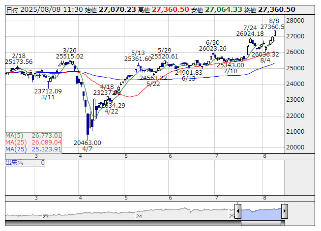JPX日経400 <日足> 「株探」多機能チャートより1 データセンター