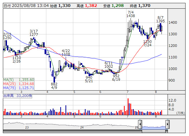 戸田工 <日足> 「株探」多機能チャートより■戸田工業<4100>の中長期の成長戦略