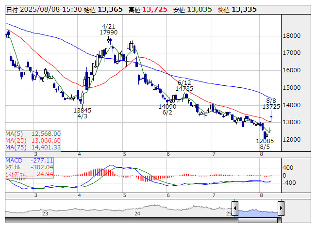 <9843> ニトリホールディングス 13335 +870 ( +7.0%) -277.1