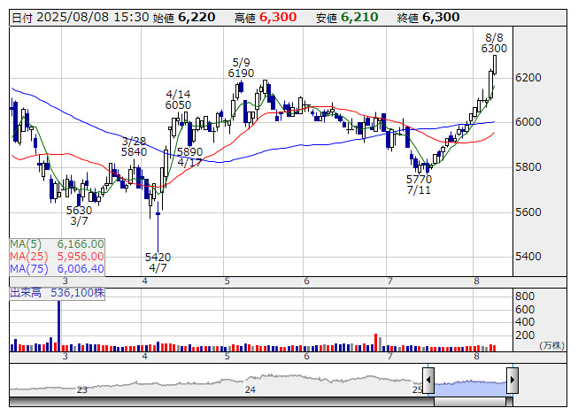 マクドナルド <日足> 「株探」多機能チャートより売上高は4125億円(同1.7%増)の従来見通しを据え置いたものの、「メニュー・バリュー」「店舗ポートフォリオ・デジタル」「サステナビリティ・ピープル」の3つの領域に注力し、直営店舗とフランチャイズ店舗を合わせたシステムワイドセールスの成長を図ったことで既存店売上高が上期時点で39四半期連続増加したほか、店舗オペレーションの効率化なども寄与し、上期業績が好調だったことが要因という。