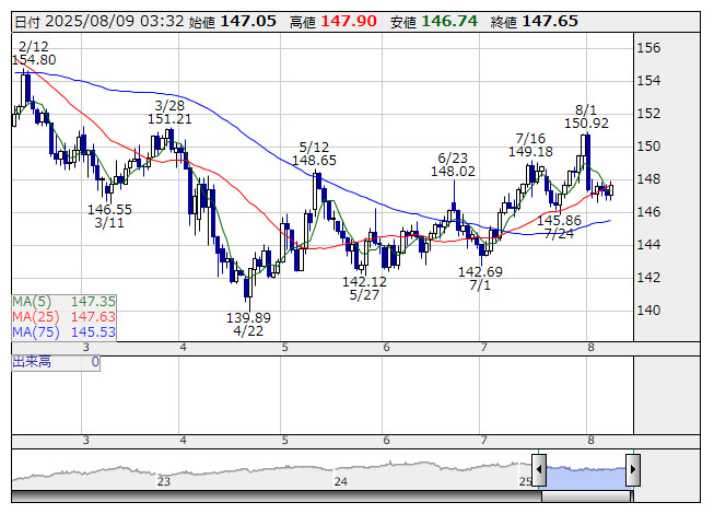 米ドル/円 <日足> 「株探」多機能チャートよりドル・円オプション市場は変動率が低下。週末要因、日本の祭日を控え、オプション売りが強まった。