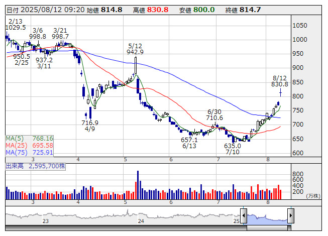 シャープ <日足> 「株探」多機能チャートより第1四半期(4~6月)において、PC事業で官公庁・自治体向けが大幅に伸長したほか、LCM(ライフサイクルマネジメント)機能の提案などが奏功して大企業向けも増収となるなど計画を上振れたことが要因。また、為替差益や持ち分法による投資利益なども織り込んだ。