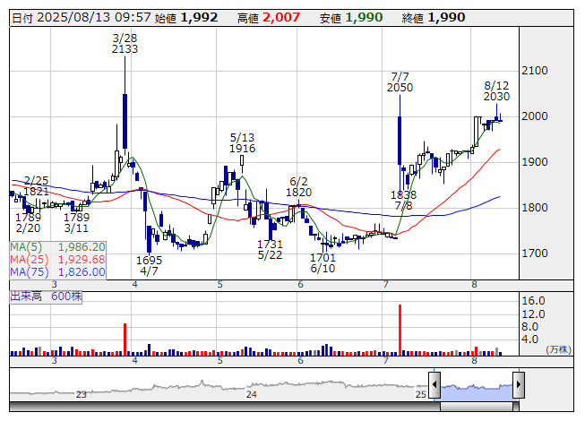 2026年3月期通期の連結業績予想については、売上高は前期比1.6%増の114.00億円、営業利益は同1.0%増の9.00億円、経常利益は同1.5%増の9.20億円、親会社株主に帰属する当期純利益は同12.9%減の6.30億円とする期初計画を据え置いている。