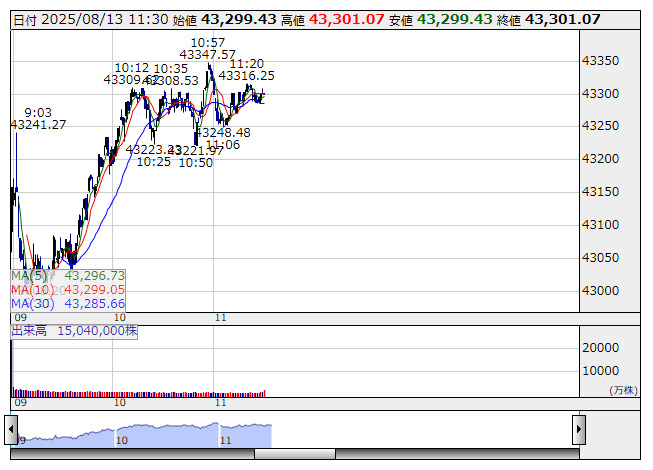 【市況】日経225先物:13日正午=670円高、4万3330円