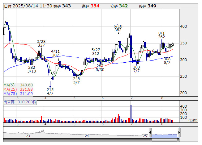 サイステップ <日足> 「株探」多機能チャートより■財務省 : 8月14日受付