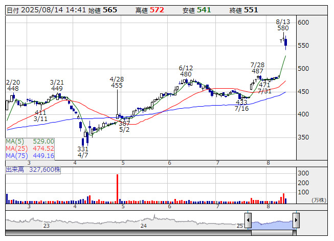 これらの発表で、週明け12日の同社株はストップ高の564円に急伸。13日も堅調な動きを見せ、これが買い予想数の上昇につながったようだ。なお、この日は利益確定売りで反落している。