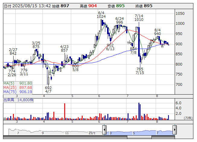 DMカンパニ <日足> 「株探」多機能チャートよりD&Mカンパニー<189A>は14日、2025年7月末時点の投資資産残高を発表した。