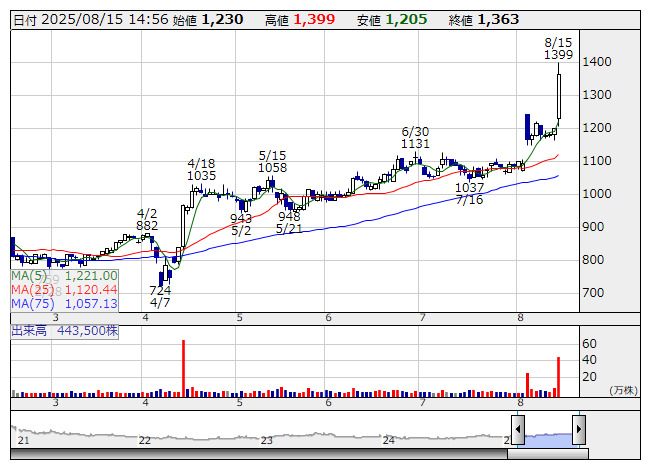 スタメン <日足> 「株探」多機能チャートより広告宣伝や展示会出展などのマーケティング活動や、金融機関をはじめ多様なパートナー企業との連携を通じた販路拡大・ビジネスマッチングに注力した結果、従業員エンゲージメント事業「TUNAG(ツナグ)」の新規顧客導入が順調に伸長したことが上振れの要因としている。