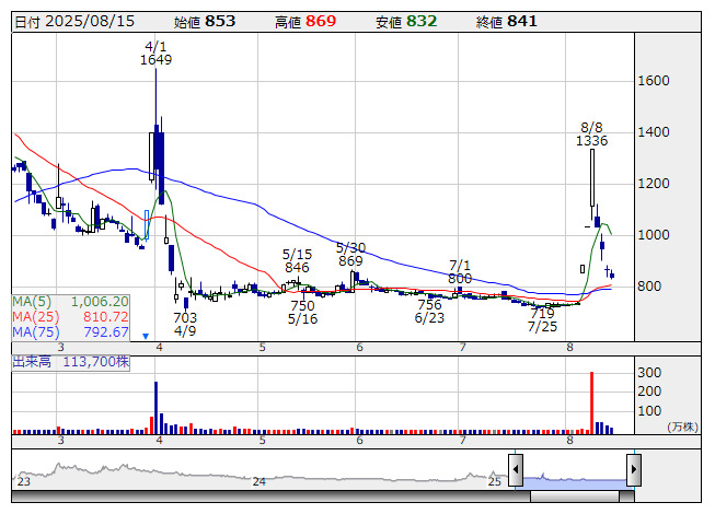 マテリアルG <156A> 825 +19 ( +2.4%) 5,300 ( 437) 6,500 ( 536)