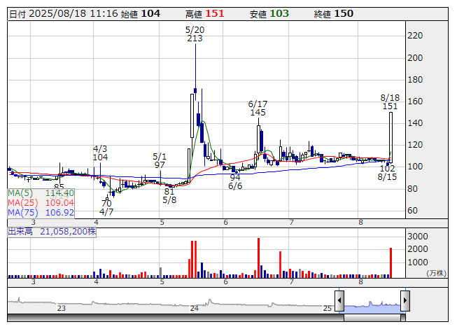 アップバンク <日足> 「株探」多機能チャートより