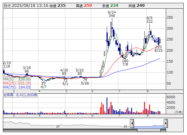 大幅反発。15日の取引終了後に「継続企業の前提に関する注記」の記載の解消を発表し、好材料視されている。25年12月度第2四半期連結累計期間の純資産額が12.34億円となり債務超過が解消されたことに加え、事業については25年12月度第1四半期連結会計期間より継続した営業黒字を計上し、引き続き堅調な推移が見込まれることから、こうした状況を総合的に判断し、同中間連結会計期間末において、継続事業の前提に関する重要な不確実性は認められなくなったと判断したとしている。