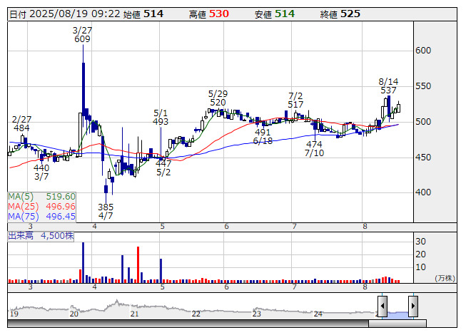 テノ.HD <日足> 「株探」多機能チャートより■財務省 : 8月19日受付