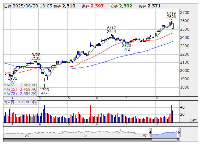 なお、同時に発表した25年6月期決算は、売上高661億9700万円(前の期比32.9%増)、営業利益88億8900万円(同9.8%減)、純利益212億8000万円(同35.7%増)だった。