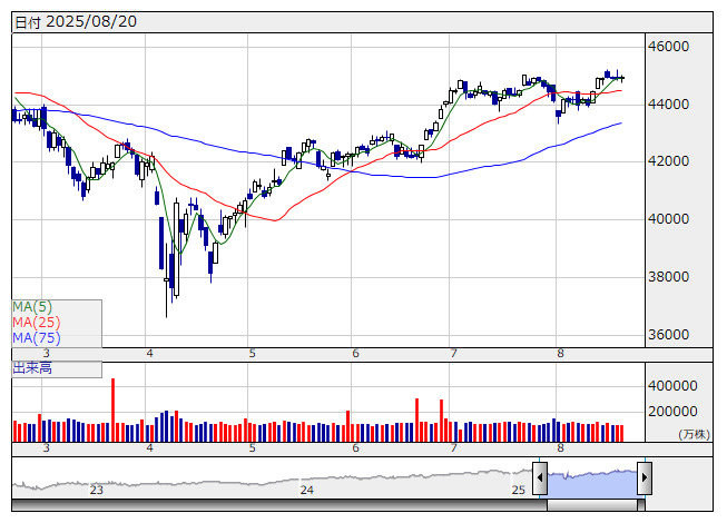 NYダウ 44938.31 ( +16.04 )