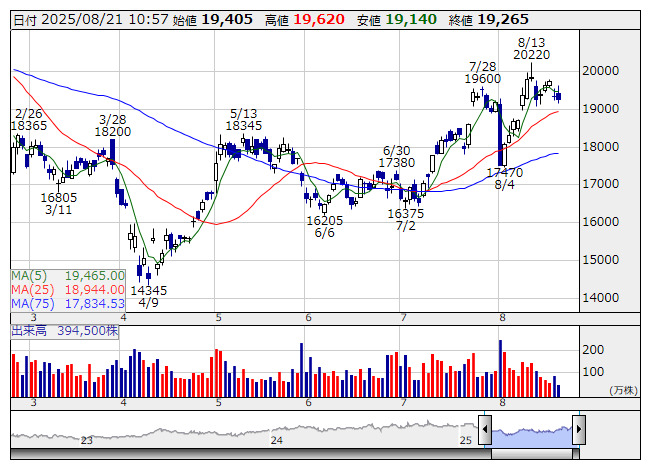 2025年08月21日10時57分 【材料】HOYAが持ち直す、上限620万株の自社株買いを発表 HOYA <日足> 「株探」多機能チャートより HOYA<7741>は持ち直しの動き。同社は21日午前10時30分、取得総数620万株(自己株式を除く発行済み株式総数の1.81%)、取得総額1000億円を上限とする自社株買いの実施を発表。同社株は朝高後にマイナス圏に沈んでいたが、自社株買いの発表を受けて株主還元姿勢を評価した買いが入り、再びプラス圏に浮上する場面があった。取得期間は8月22日から2026年1月21日とする。 出所:MINKABU PRESS