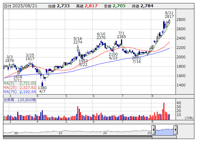 発行済み株式数(自社株を除く)の0.56%にあたる5万株(金額で3000万円)を上限に自社株買いを実施する。買い付け期間は8月22日から26年3月31日まで。