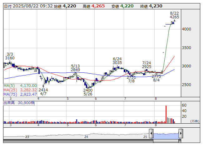 芦森工 <日足> 「株探」多機能チャートより