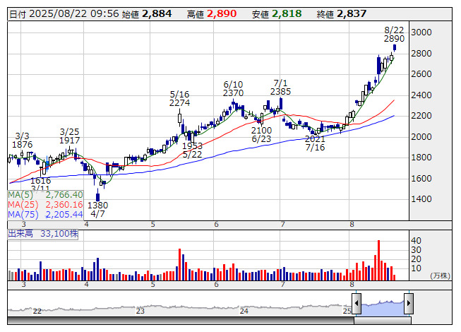 ワンキャリア <日足> 「株探」多機能チャートより完全子会社化により「CAMPUS REACH」を通じた大学生活の支援、並びに「ワンキャリア」を通じた就活支援を行うことで、大学生の日々のキャンパスライフから就職活動まで一気通貫でサポートすることができ、ワンキャリア単体ではサポートできなかった就職支援以外の学生生活支援領域に進出することが可能となると判断した。取得価額は非開示。なお、同件による25年12月期業績予想への影響は精査中としている。