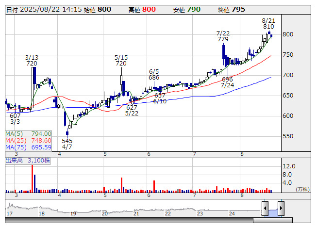 フォーライフ <日足> 「株探」多機能チャートよりフォーライフ<3477>は、神奈川・東京・京都の人気エリアを中心に「分譲住宅事業」「注文住宅事業」「その他事業」の3つの事業を展開。「居住性・利便性・資産性」 を兼ね備えた都市型コンパクト住宅を提供している。