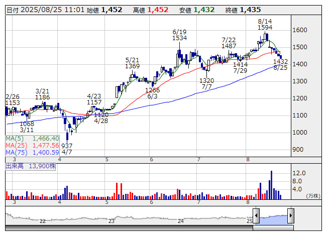 コラントッテ <日足> 「株探」多機能チャートより■財務省 : 8月25日受付