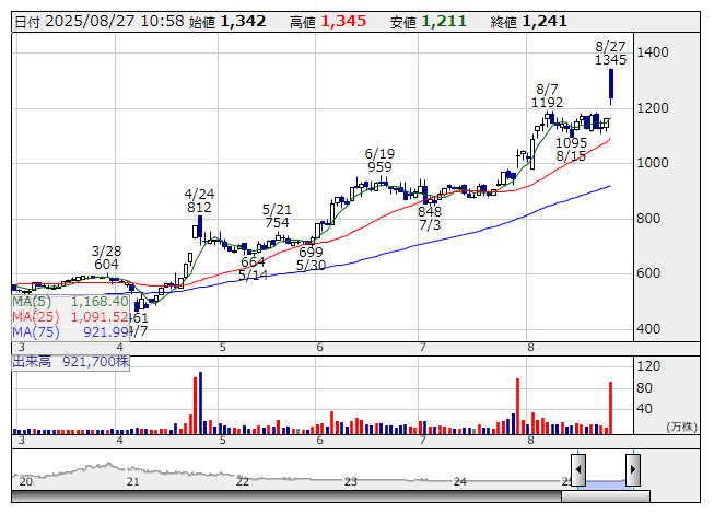 2025年08月27日10時57分 【材料】マクアケが3連騰、プロジェクトの単価向上策奏功し25年9月期業績予想を上方修正 マクアケ <日足> 「株探」多機能チャートより マクアケ<4479>が3連騰し年初来高値を更新している。26日の取引終了後、25年9月期の単独業績予想について、売上高を40億4000万円から44億8000万円(前期比22.7%増)へ、営業利益を3億1000万円から4億3000万円(前期6200万円の赤字)へ、最終利益を2億9000万円から3億6000万円(同1億300万円の赤字)へ上方修正したことが好感されている。 継続的に注力しているプロジェクト単価向上の各種施策が功を奏し、取扱高が堅調に推移していることに加えて、広告代行配信サービスを中心とした附随サービスの売り上げが増加していることが寄与する。 出所:MINKABU PRESS