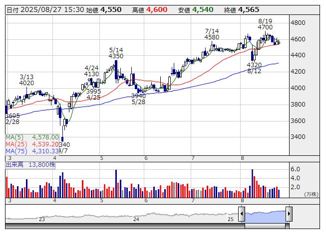 日本トリム <日足> 「株探」多機能チャートより■財務省 : 8月27日受付