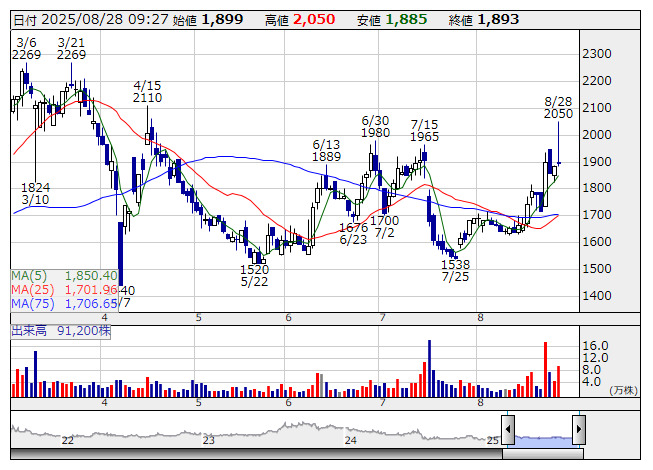 2025年08月28日09時27分 【材料】ジェイフロは一時8.8%高、暗号資産マイニング事業を開始 ジェイフロ <日足> 「株探」多機能チャートより ジェイフロンティア<2934>は一時8.8%高の2050円まで上昇した。この日朝方、子会社で暗号資産マイニング事業を開始すると発表した。オンライン診療・服薬指導アプリ「SOKUYAKU(ソクヤク)」をはじめとした各種サービスにおけるビットコイン決済機能の導入検討に向け、準備資産としてビットコインの購入と暗号資産のマイニングを行う。今後の外国人利用者や医療ツーリズムの増加、海外展開を見据え、国際的な利便性の更なる向上を目指す。これが材料視されている。 前日27日取引終了後にはECモール支援のshake-hands(東京都港区)の子会社化を目的とした基本合意書の締結を明らかにした。業績への影響は現在精査中としている。 出所:MINKABU PRESS