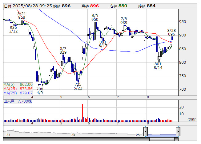 2025年08月28日09時36分 【材料】フーディソンはしっかり、株主優待を拡充 フーディソン <日足> 「株探」多機能チャートより フーディソン<7114>はしっかり。27日取引終了後、株主優待制度の拡充を発表した。現行では100株以上を保有する「個人株主」を対象としていたが、これに加えて新たに100株以上を保有する「飲食店を営む株主」向けの優待を新設する。半年以上の継続保有の条件に変更はない。来年3月から実施する。 出所:MINKABU PRESS