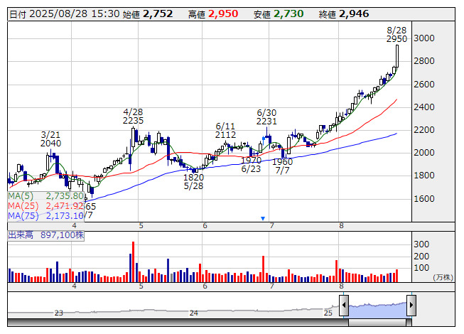 2025年08月28日15時45分 【材料】愛知鋼が自社株1191万5928株を9月5日付で消却 愛知鋼 <日足> 「株探」多機能チャートより 愛知製鋼<5482>がこの日の取引終了後、自社株1191万5928株(消却前発行済み株数の15.59%)を9月5日付で消却すると発表した。なお、消却後の発行済み株数は6452万820株となる。 出所:MINKABU PRESS