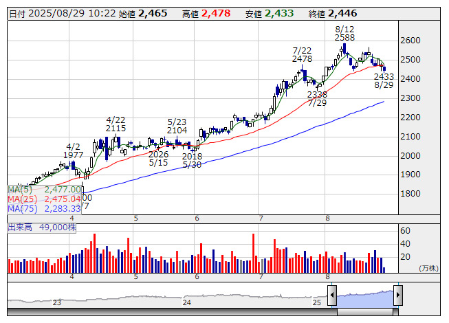 同社は2025年7月8日に2026年2月期第1四半期業績を発表している。売上高は前年同期比4.8%増、営業利益が同11.9%増と好調なスタートを切った。今期の業績予想は、売上高は前期比4.1%増の885,000百万円、営業利益は同1.7%増の25,700百万円をしており、既存店の成長を中心に増収・増益を目指す計画である。足元の進捗状況は堅調である一方、今期業績予想は慎重な内容となっていることから、業績の上振れ余地は相応にあると考える。