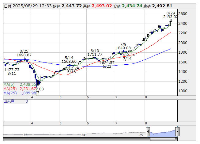 非鉄金属 <日足> 「株探」多機能チャートより●東証33業種 値上がり: 9 業種 値下がり: 24 業種
