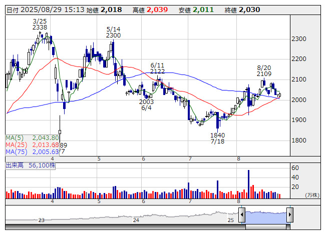 ムゲンE <日足> 「株探」多機能チャートより■財務省 : 8月29日受付