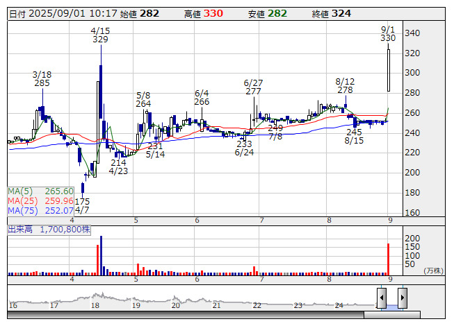 2025年09月01日10時15分 【材料】Sワイヤーが続急伸、インフルエンサーマーケティング支援のiHackを子会社化へ Sワイヤー <日足> 「株探」多機能チャートより ソーシャルワイヤー<3929>が続急伸し年初来高値を更新している。8月29日の取引終了後、美容、化粧品領域に特化したインフルエンサーマーケティング支援事業を展開するiHack(東京都千代田区)の全株式を9月3日付で取得し子会社化すると発表しており、これを好感した買いが流入している。 今回の子会社化は、インフルエンサーPR領域の大幅拡大と複合的なデジタルPRの提供体制の構築を目指したもの。取得価額は8億800万円。なお、26年3月期業績予想への影響は精査中としている。 出所:MINKABU PRESS
