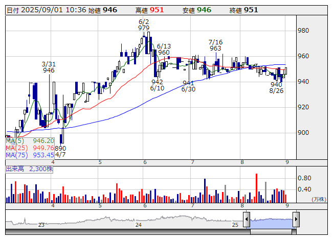 大森屋 <日足> 「株探」多機能チャートより■財務省 : 9月1日受付