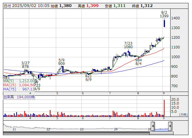 2025年09月02日10時05分 【材料】rakumoが急反騰し年初来高値を更新、米アブポイントの日本法人と業務提携 rakumo <日足> 「株探」多機能チャートより rakumo<4060>は急反騰し、年初来高値を更新している。同社は1日の取引終了後、米アブポイント<AVPT>子会社のAvePoint Japanと業務提携を締結したと発表しており、業績の押し上げ効果を期待する買いが流入している。米マイクロソフト<MSFT>と強固なパートナーシップを持つアブポイントの日本法人との提携により、Microsoft 365に、グループウェアSaaSの「rakumo」シリーズを提供していく。 25年12月期業績に与える影響は精査中。AvePoint Japanによる「rakumo for Microsoft 365」のライセンス売上高の一定割合を、ストック収益として計上していく。 出所:MINKABU PRESS
