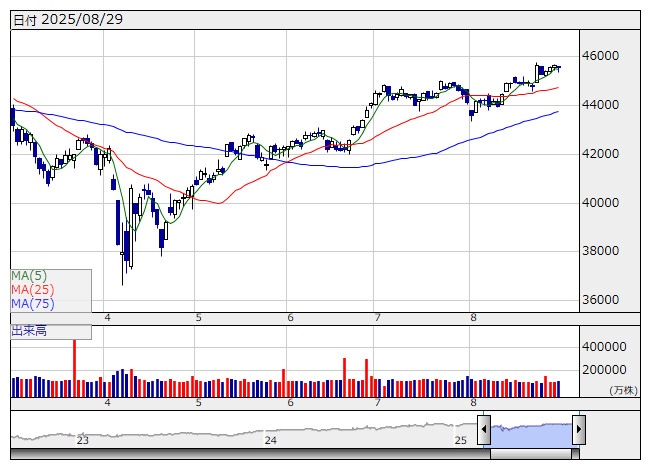 終始マイナス圏で推移し、終盤下げ幅を拡大させた。ロシアによるウクライナの軍事侵攻は継続していることが、リスク回避の売りを加速させた。また、8月のS&Pグローバル総合購買担当者景気指数(PMI)などが翌3日に発表されるため、見極めるムードも強まった。一方、原油価格が上昇したが、相場を支えるには力不足だった。