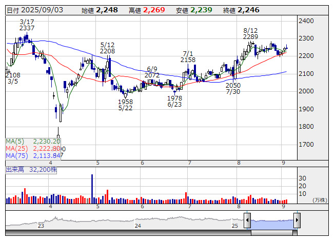 中部鋼鈑 <日足> 「株探」多機能チャートより中部鋼鈑<5461>は2日、「中部鋼鈑 統合報告書 2025」を発行したと発表した。