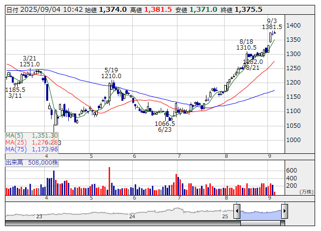 高島屋 <日足> 「株探」多機能チャートより■財務省 : 9月4日受付