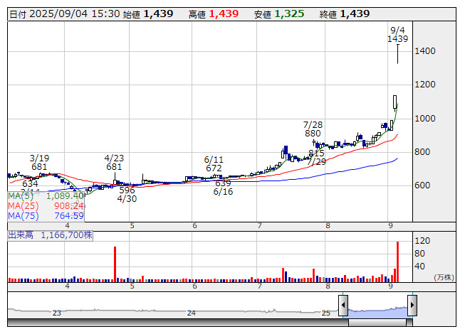 イトヨーギョ <日足> 「株探」多機能チャートより個別ではイトーヨーギョー<5287>、日本鋳鉄管<5612>、ファインシンター<5994>、ReYuu Japan<9425>がストップ高。ウェルディッシュ<2901>、ショーケース<3909>、旭コンクリート工業<5268>、水道機工<6403>、ダイワ通信<7116>は一時ストップ高と値を飛ばした。ホーブ<1382>、ホクリヨウ<1384>、太洋基礎工業<1758>、佐田建設<1826>、大盛工業<1844>など96銘柄は年初来高値を更新。エス・サイエンス<5721>、誠建設工業<8995>、ラピーヌ<8143>、ジオスター<5282>、エディア<3935>は値上がり率上位に買われた。