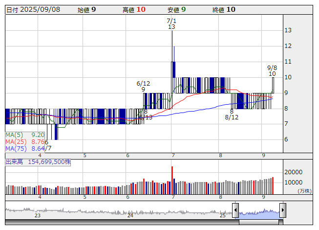 ランド <日足> 「株探」多機能チャートより(東証上場 4249 銘柄対象[ETF、REIT含む])