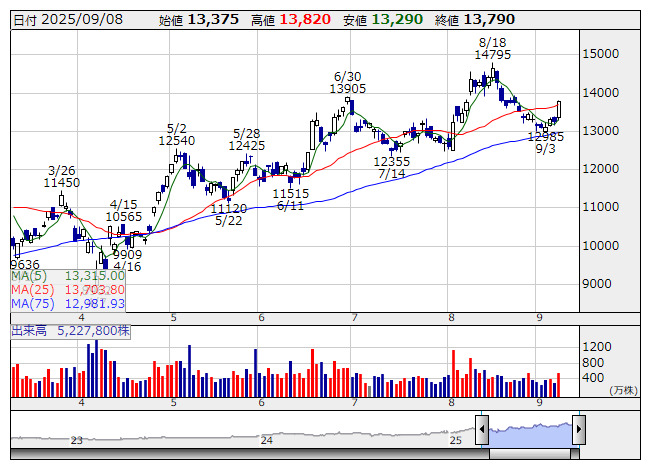 任天堂 <日足> 「株探」多機能チャートより(東証プライム上場 1616 銘柄対象)