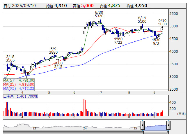 発行済み株式数(自社株を除く)の0.155%にあたる1万6000株(金額で4896万円)を上限に、9月11日朝の東証の自己株式立会外買付取引「ToSTNeT-3」で自社株買いを実施する。