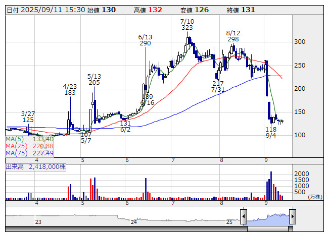 ジェリビンズ <日足> 「株探」多機能チャートより■財務省 : 9月11日受付