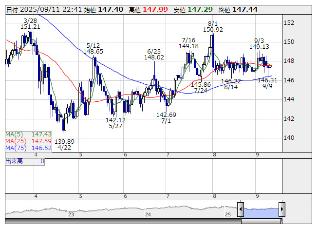インフレはほぼ想定通りとなった一方、労働市場の減速の兆候を受けドルは売り買い交錯。ドル・円は148円17銭まで上昇後、147円36銭まで下落。ユーロ・ドルは1.1662ドルまで下落後、1.1739ドルまで上昇した。ポンド・ドルは1.3497ドルまで下落後、1.3561ドルまで上昇した。